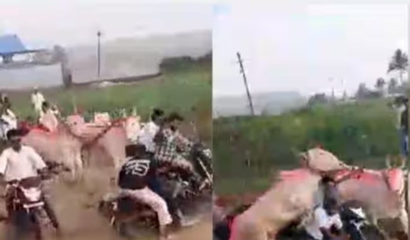 - बैलगाडा शर्यतीवेळी थरारक घटना! कोल्हापूरमध्ये अनेक मोटारसायकल आडव्या करत बैलांनी लोकांना चिरडले, अनेकजण जखमी..