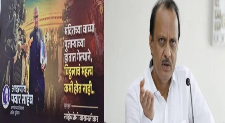 या बॅनरवर मंदिराच्या चाव्या पुजाराच्या हातात गेल्याने, विठ्ठलाचे महत्व कमी होत नाही, अशा आशयाचा मजकूर छापण्यात आला आहार. या बॅनरच्या माध्यमातून शरद पवारांच्या कार्यकर्त्यांनी अजित पवारांना चिमटा काढला आहे. Baramati