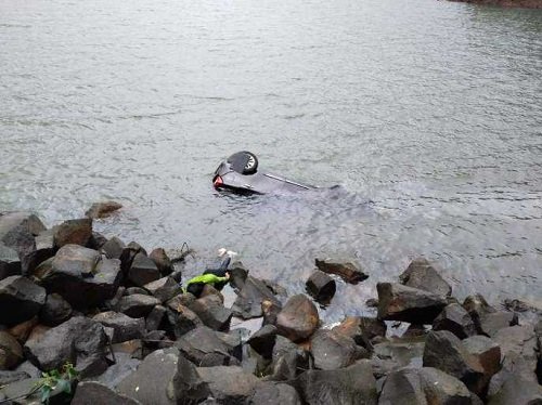 या कारमधील ४ जण होते. त्यातील एकाला वाचविण्यात यश आले आहे. गाडीतील ३ जण बुडाल्याची भिती व्यक्त केली जात आहे. त्यांचा शोध सध्या घेतला जात आहे.