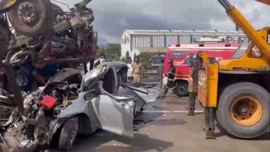 मोठी बातमी! मुंबई-पुणे महामार्ग ठरला पुन्हा जीवघेणा, कार कंटेनरचा भीषण अपघात; २ ठार, ४ जण जखमी..