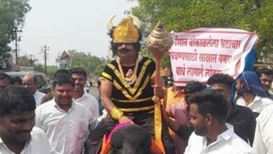 Loksabha Election 2024 : काय सांगता! सोलापूरमध्ये चक्क रेड्यावर बसून यमदेवाने भरला उमेदवारी अर्ज…
