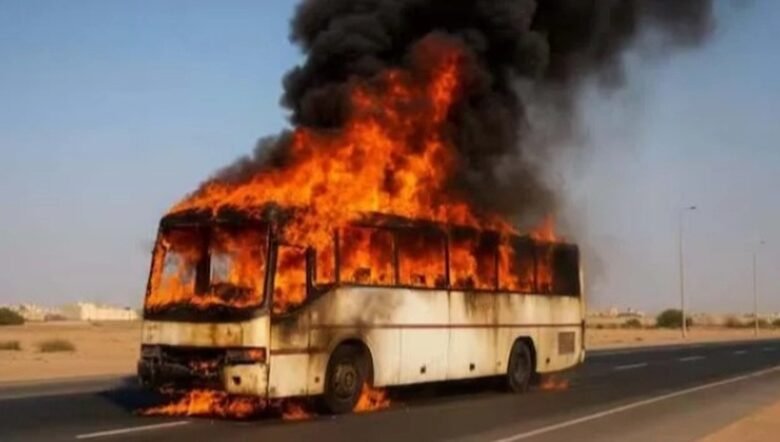 ही बस डिझेल टँकरला धडकल्यानंतर काही सेकंदांतच ज्वाळांनी वेढली गेली. त्यामुळे आत अडकलेल्या प्रवाशांना बाहेर पडण्याची संधीच मिळाली नाही. प्राथमिक माहितीनुसार, बसमध्ये ४२ भारतीय प्रवासी होते आणि सर्वांच्या मृत्यूची भीती वर्तविण्यात येत आहे.