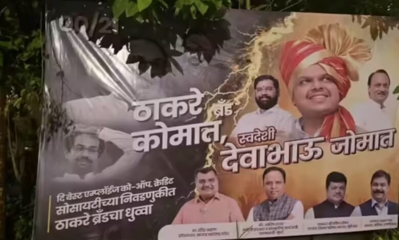 या निवडणुकीत शशांक राव यांच्या पॅनेलने 14, तर भाजपचे नेते आमदार प्रसाद लाडप्रणित श्रमिक उत्कर्ष सभेच्या सहकार समृद्धी पॅनेलने सात जागा जिंकल्या. या निवडणुकीत ठाकरे ब्रँडला एकही जागा मिळाली नाही. त्यांना या निवडणुकीत पराभवाला सामोरे जावे लागले. भाजपच्या यशानंतर त्यांच्याकडून ‘ठाकरे ब्रँड कोमात, स्वदेशी देवाभाऊ जोमात’ असं लिहिलेले पोस्टर शिवसेना भवनासमोर लावण्यात आले आहेत. विशेष म्हणजे या पोस्टरवर केवळ उद्धव ठाकरे यांचे फोटो आहेत. राज ठाकरे यांचा फोटो लावणं भाजपने टाळल असल्याचं दिसून येत आहे.