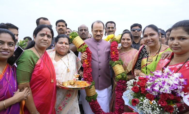 बारामती : राज्याच्या अर्थसंकल्पात ‘मुख्यमंत्री माझी लाडकी बहीण’ योजने’सह महिला- भगिनींसाठी अनेक योजनांचा समावेश करून त्यांना दिलासा दिल्याबद्दल विविध क्षेत्रातील महिला- भगिनींनी उपमुख्यमंत्री तथा जिल्ह्याचे पालकमंत्री अजित पवार यांना विमानतळ येथे ओवाळून त्यांचे आभार मानले आहे.